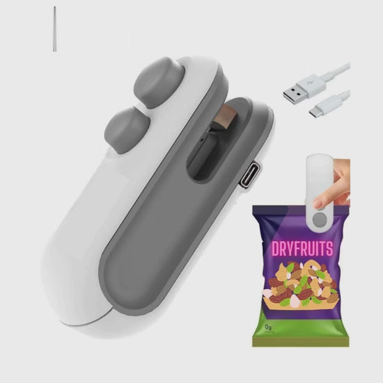 The Portable Rechargeable Mini Sealer is a compact and easy-to-use tool designed to reseal plastic bags quickly and securely. It helps preserve food freshness by preventing air and moisture from entering opened packets. Ideal for kitchen use, travel, and daily storage needs, this handheld sealer is lightweight and convenient to carry anywhere.